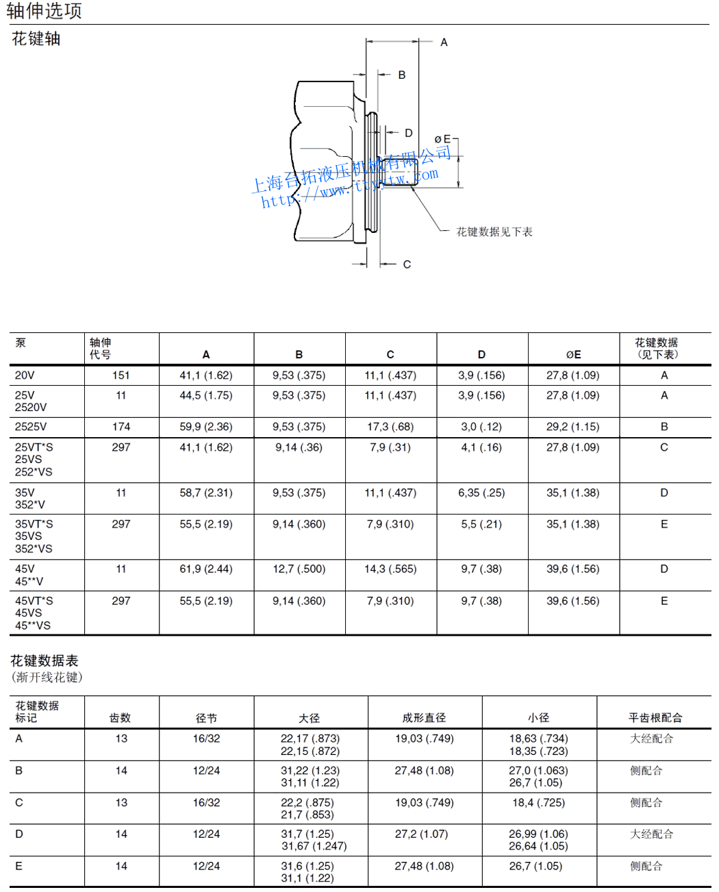 花鍵軸(從泵蓋端看)