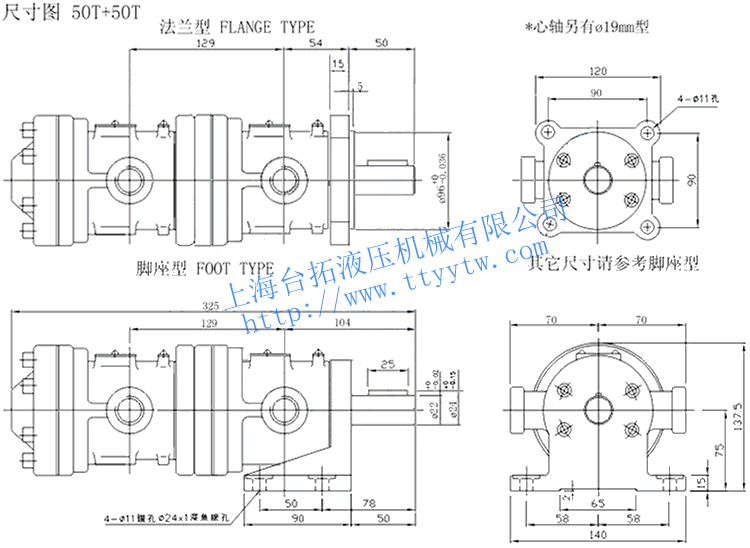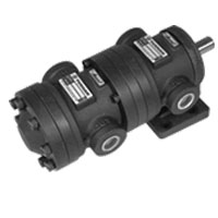 雙聯定量葉片泵50T+50T是由兩個獨立的50T、50T型葉片泵串聯組裝而成,使用同一電機驅動,具有兩個出油口,可分別向兩個獨立回路供油。適用于二缸同步動作回路,如專用機床等。
