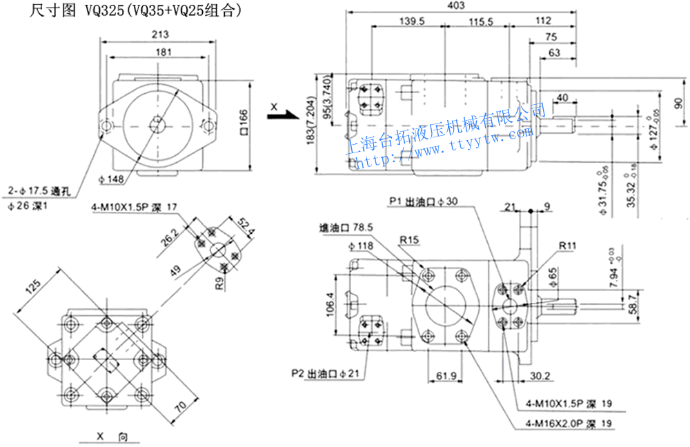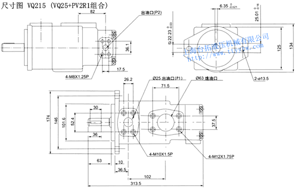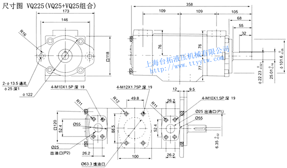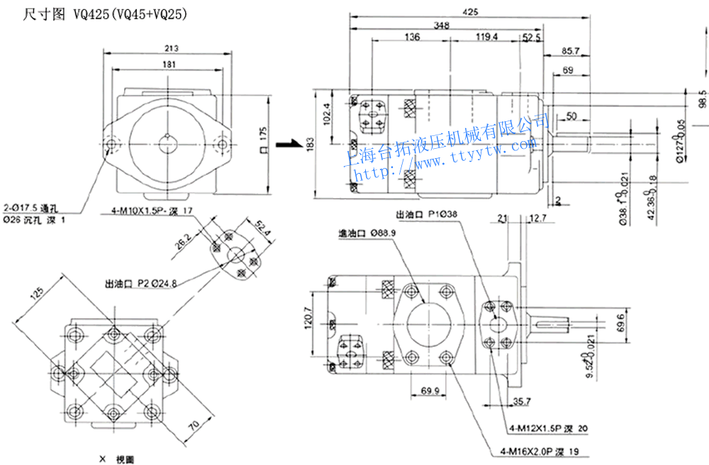 高壓雙聯定量葉片泵VQ425(VQ45+VQ25組合)尺寸圖下載
