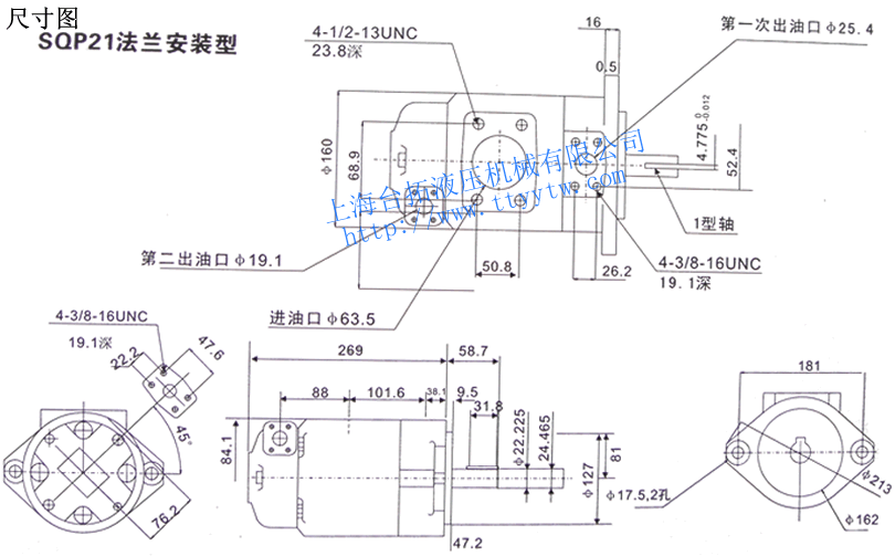 高壓雙聯定量葉片泵SQP21尺寸圖下載 高壓雙聯定量葉片泵SQP31尺寸圖下載