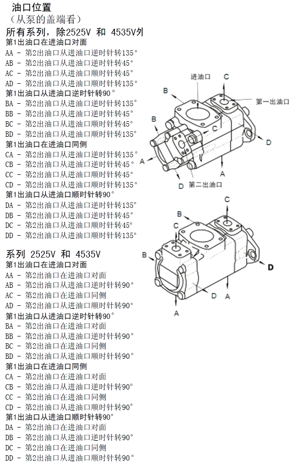 安裝型式 軸伸 油口位置 設計號 旋轉方向 特殊后綴