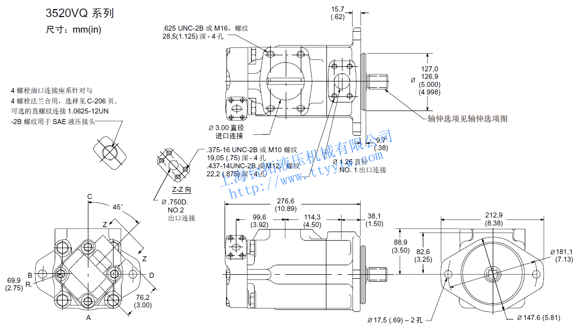 高壓雙聯子母葉片泵3525VQ尺寸圖下載 高壓雙聯子母葉片泵4520VQ尺寸圖下載