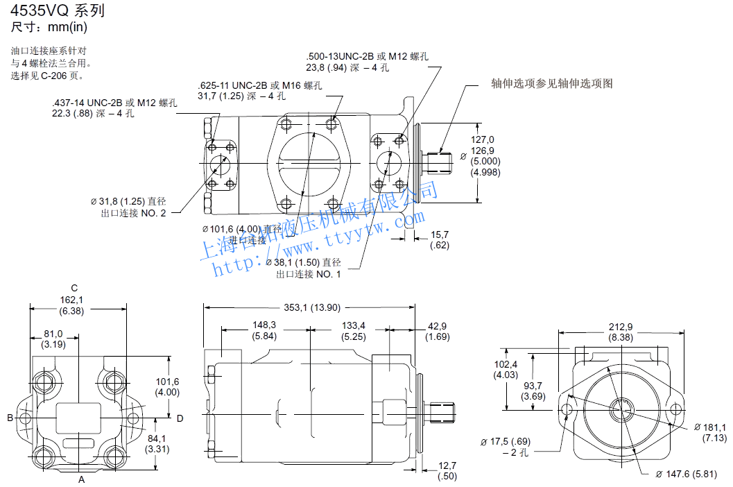 高壓雙聯子母葉片泵4525VQ尺寸圖下載 高壓雙聯子母葉片泵4535VQ尺寸圖下載