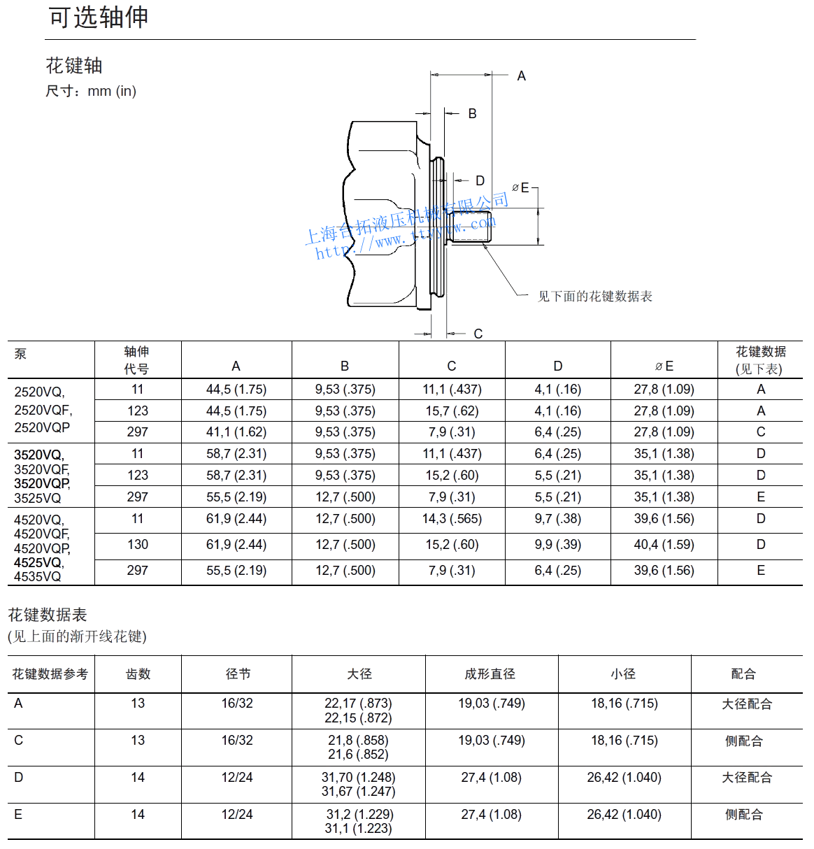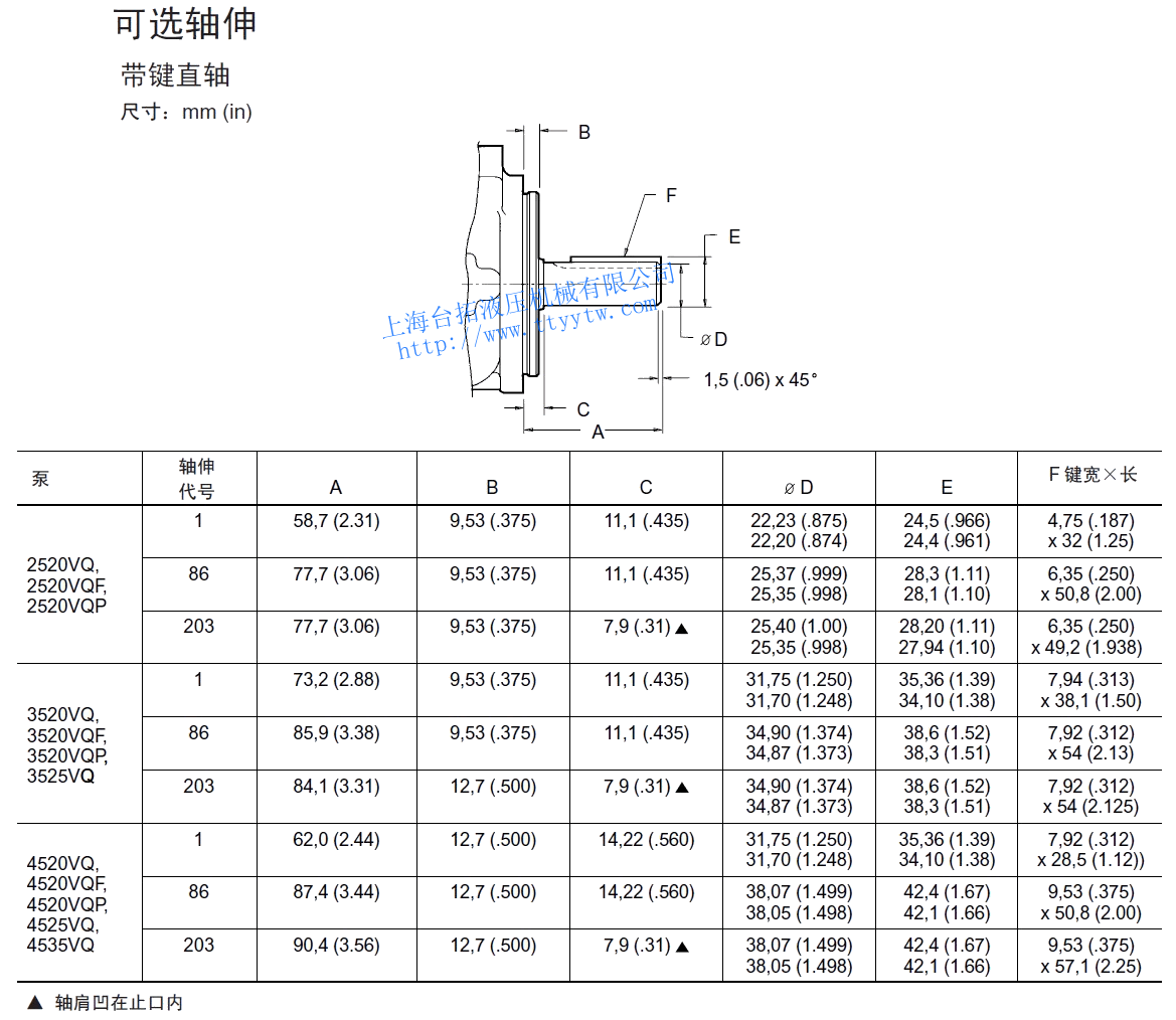 高壓雙聯子母葉片泵VQ系列可選軸伸花鍵軸
