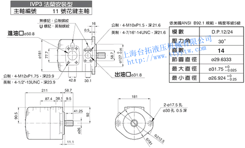 子母葉片定量泵IVP3(86號平鍵主軸/1&86號平鍵主軸)尺寸圖下載 子母葉片定量泵IVP3(11號花鍵主軸)尺寸圖下載