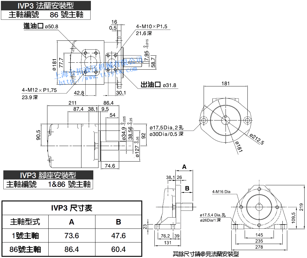 子母葉片定量泵IVP4(1號平鍵主軸)尺寸圖下載 子母葉片定量泵IVP4(86號平鍵主軸/1&86號主軸)尺寸圖下載