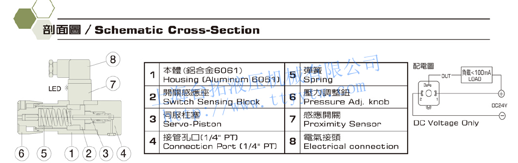 1、壓力繼電器PSL貼壁壓力直讀式,VDC電晶體感應開關,貼壁型安裝,為新型無接點式油電壓力開關,連接牙口為RC1/4",高負載:24VDC<100mA,特殊無接點感應開關輸出可與PRC或電腦程式讀出輸出時LED批示燈識別。