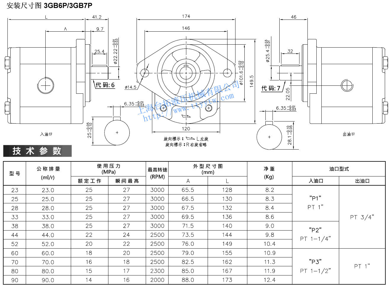 高壓齒輪泵3GB6P2,3GB7P2規格表