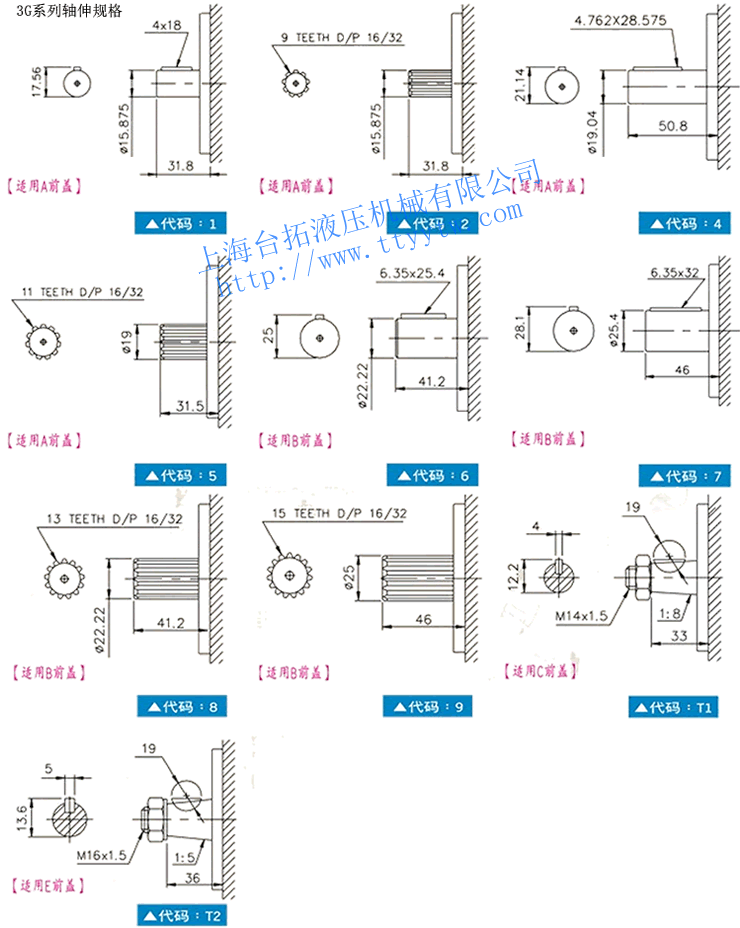 3 G C T1 F6 70 R 系列 型式/功能 前蓋法蘭規(guī)格 軸伸規(guī)格 出入油口規(guī)格 型號(hào) 旋向(R,L) 備注:R表示右轉(zhuǎn),面向軸伸順時(shí)針;L表示左轉(zhuǎn),面向軸伸逆時(shí)針。2、假設(shè)您所要的前泵排量是70.0ml/rev,旋向是右旋,正確的訂購型號(hào):3GCT1F670R。