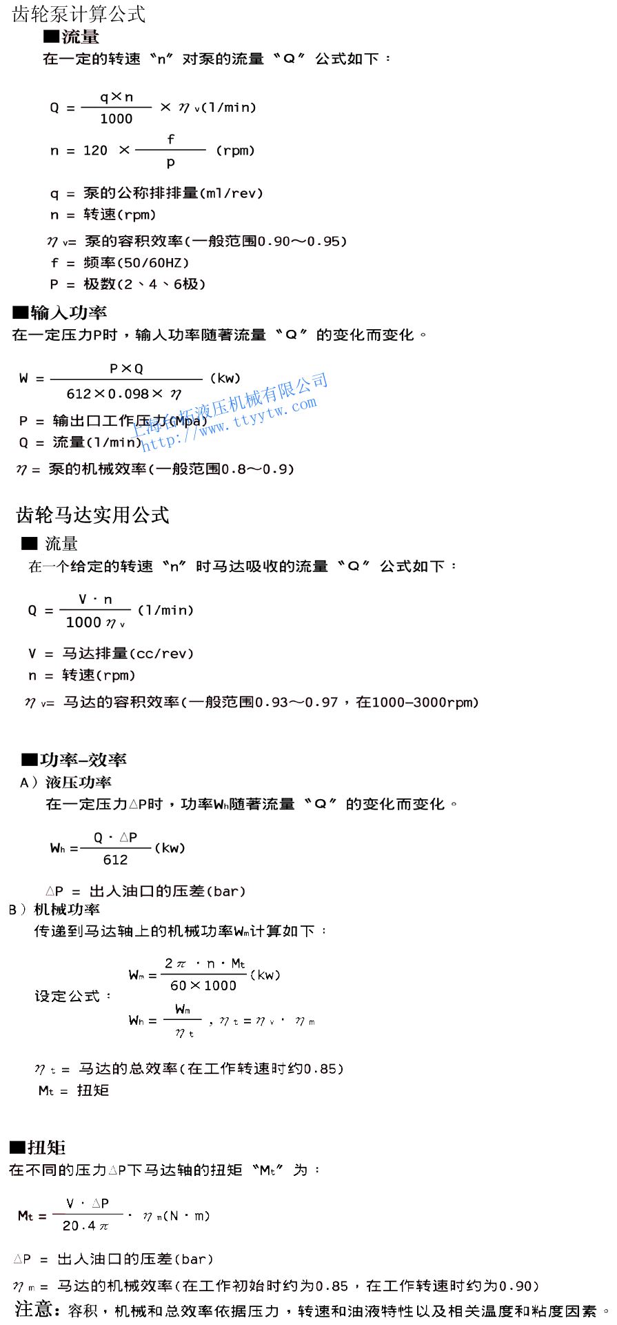 齒輪泵齒輪馬達(dá)計(jì)算公式