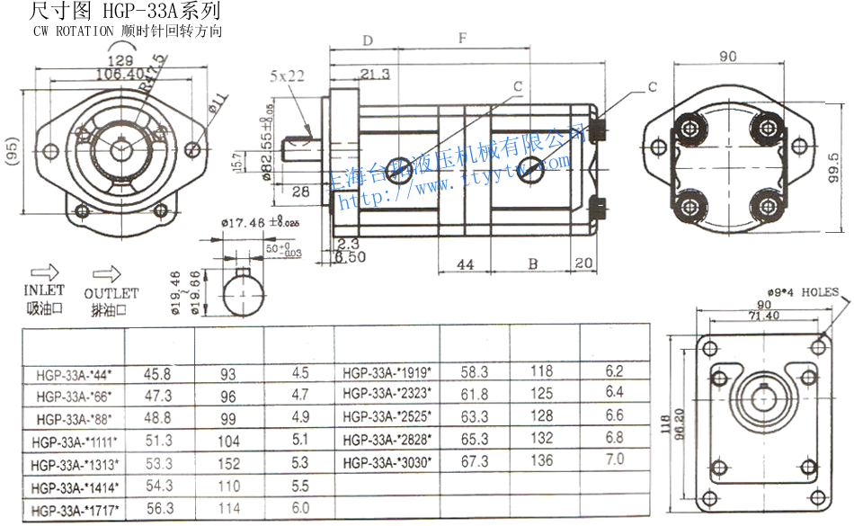 高壓雙聯齒輪泵HGP-33A系列尺寸圖