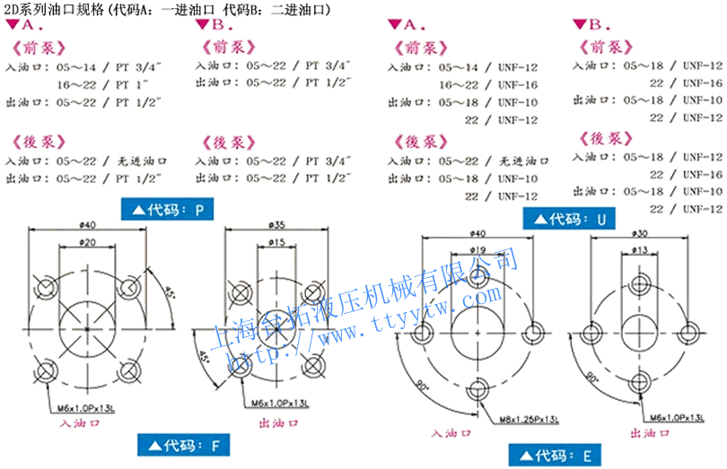 2 D G 1 B P 16 14 R 系列 型式/功能 前蓋法蘭規(guī)格 軸伸規(guī)格 2進(jìn)油口數(shù) 出入油口規(guī)格 前泵排量 后泵排量 旋向(R,L) 備注:1、R表示右轉(zhuǎn),面向軸伸順時(shí)針;L表示左轉(zhuǎn),面向軸伸逆時(shí)針。2、假設(shè)您選前蓋法蘭為G,軸伸代碼為1,二進(jìn)油口代碼為B,出入油口規(guī)格代碼為P,選用排量是16&14ml/r,旋向是右旋,正確的訂購(gòu)型號(hào):2DG1BP1614R。