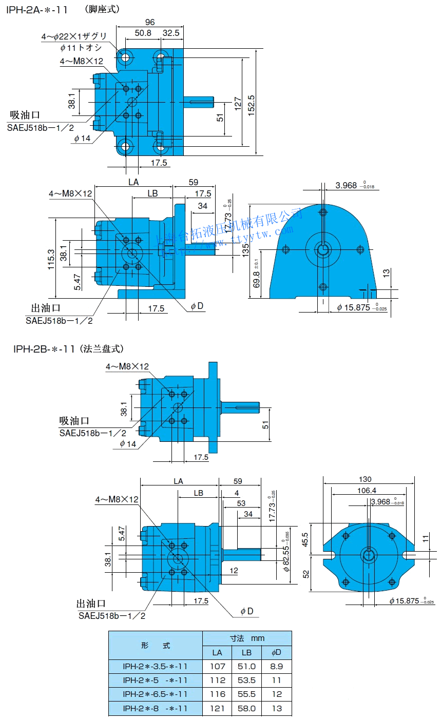 內嚙合齒輪泵IPH-2A/B-*-11尺寸圖下載 內嚙合齒輪泵IPH-3A/B-*-20尺寸圖下載