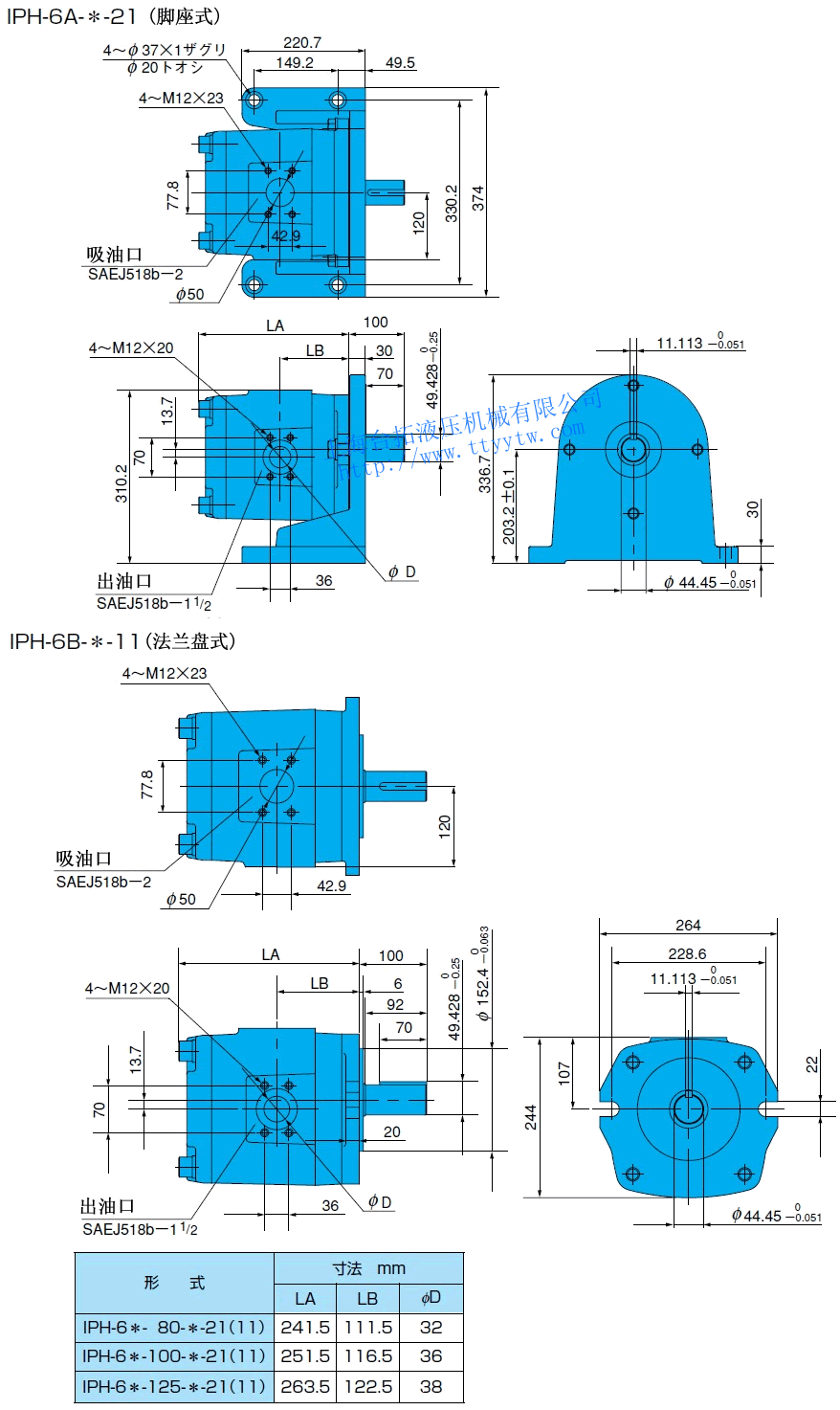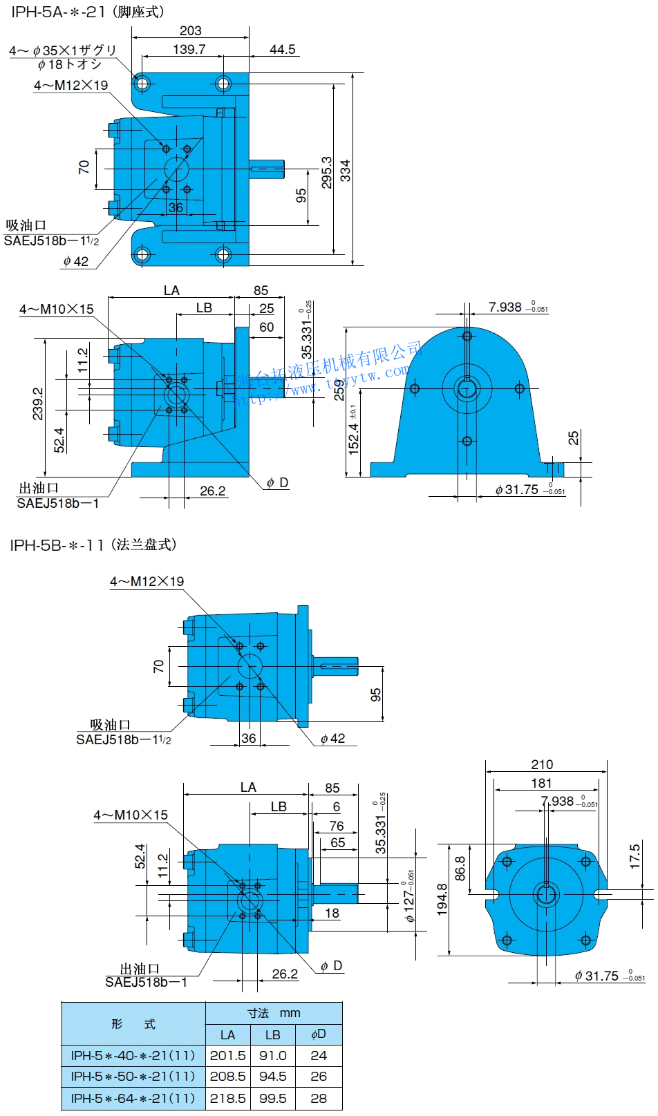 21:5A,6A內嚙合齒輪泵IPH規格表