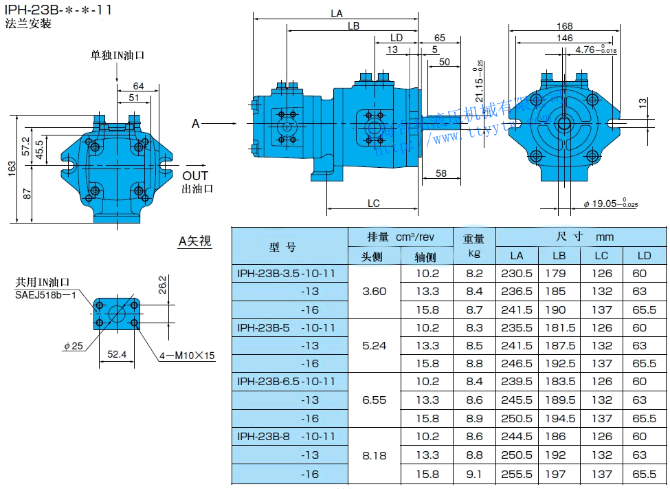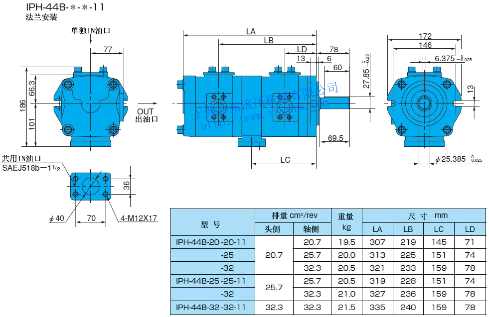 雙聯內嚙合齒輪泵IPH-56B-*-*-11尺寸圖下載 雙聯內嚙合齒輪泵IPH-66B-*-*-11尺寸圖下載