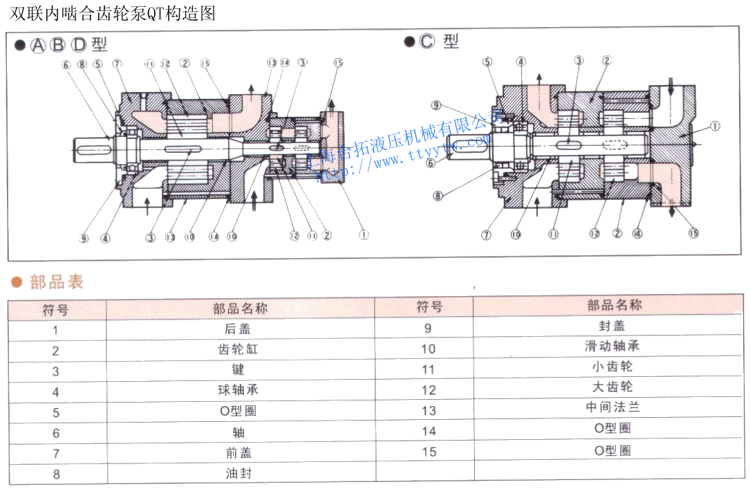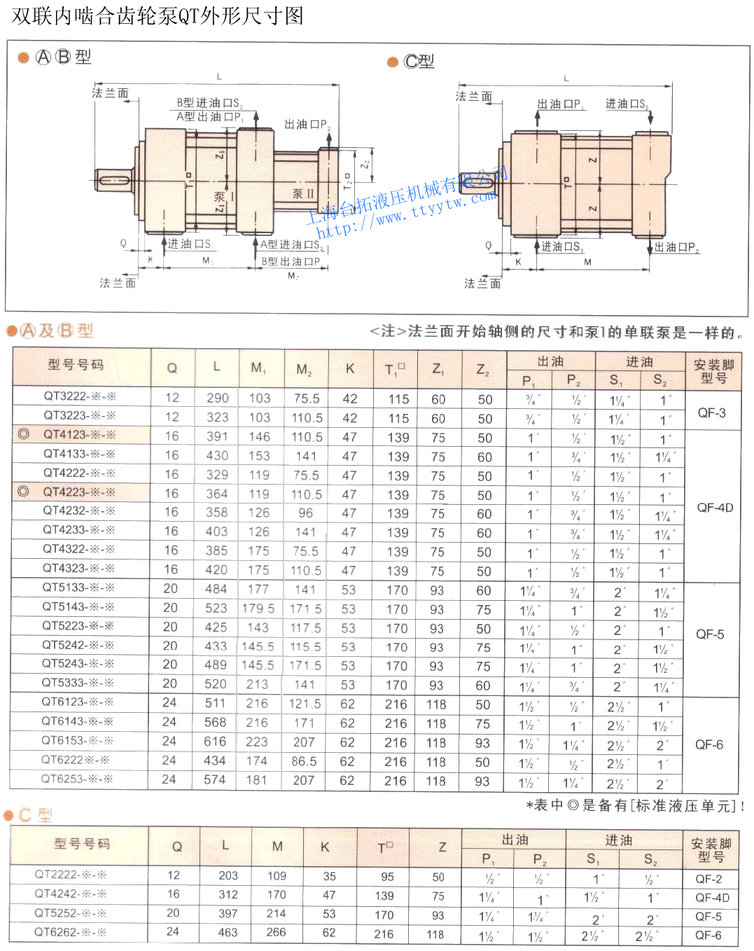 雙聯(lián)內(nèi)嚙合齒輪泵QT組合表