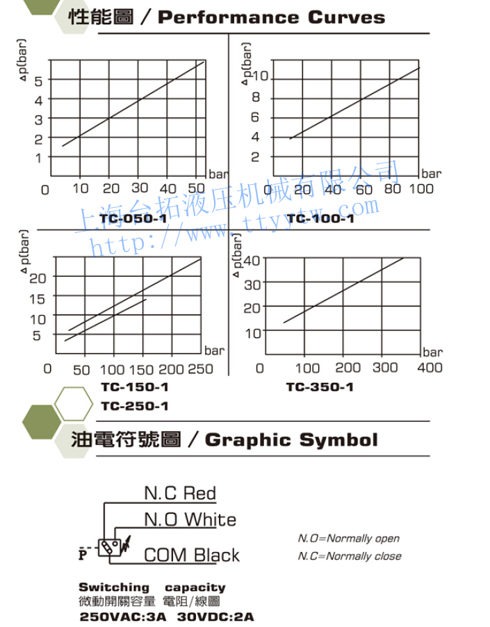 1、壓力繼電器TC一般型小型壓力開關,微動開關容量,牙口為1/4"PT(RC),1/4"NPT,1/4"PF(G)三種。