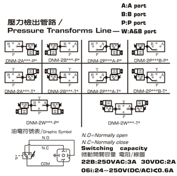 壓力繼電器DNM壓力直讀式, 疊加式,負載:5A-125,250VAC,LOAD:5A,30VDC,0.15A,125VDC。
