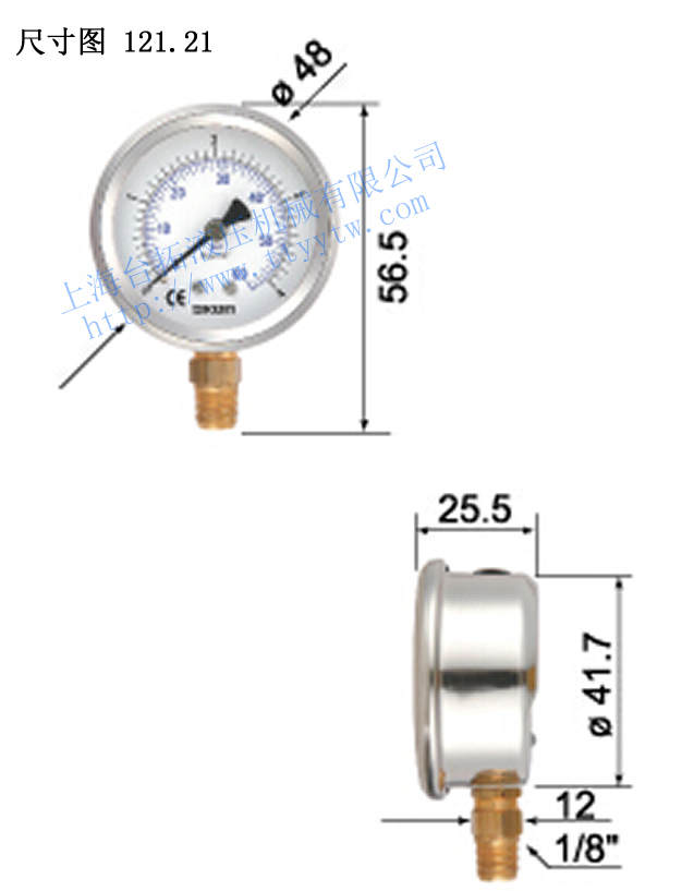 2、充油式壓力表121.21主要被使用于高壓力負(fù)載及激烈震動的工作環(huán)境。