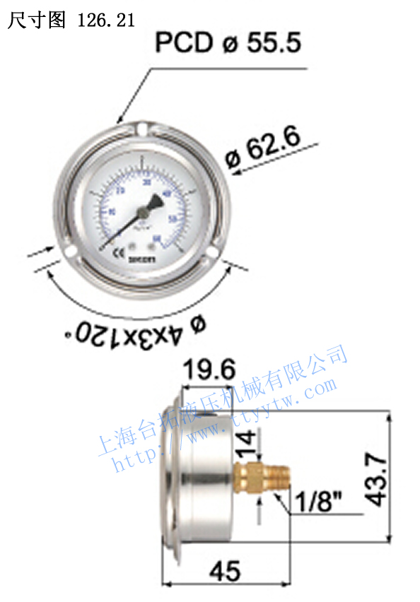 臺灣協(xié)鋼SKON充油式壓力表126.21尺寸圖