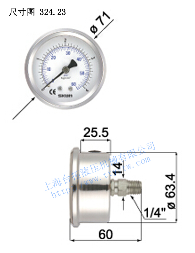 充油式不銹鋼壓力表324.23尺寸圖