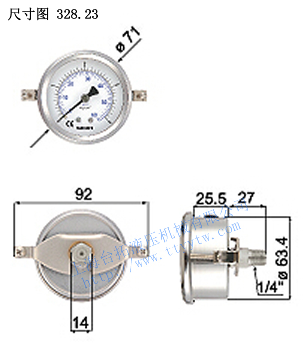 充油式不銹鋼壓力表328.23尺寸圖