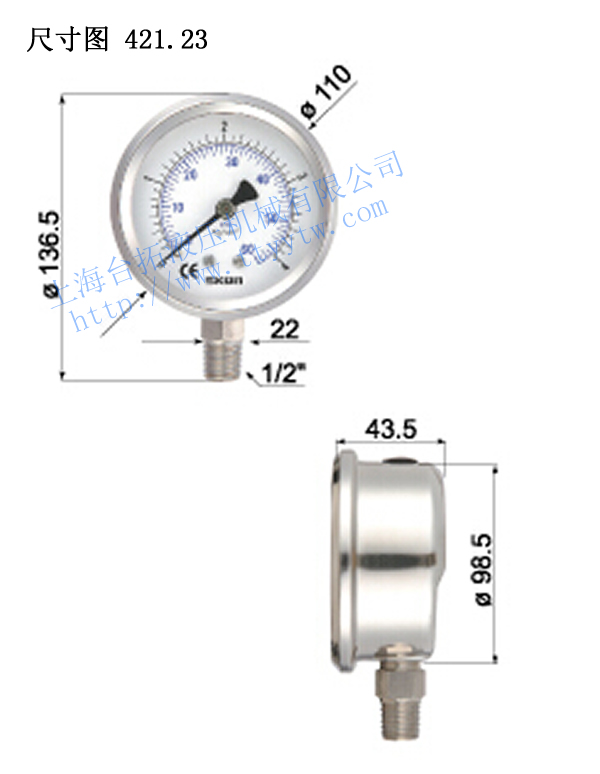 2、充油式不銹鋼壓力表421.23使用于高壓力負載及激烈震動的工作環境。