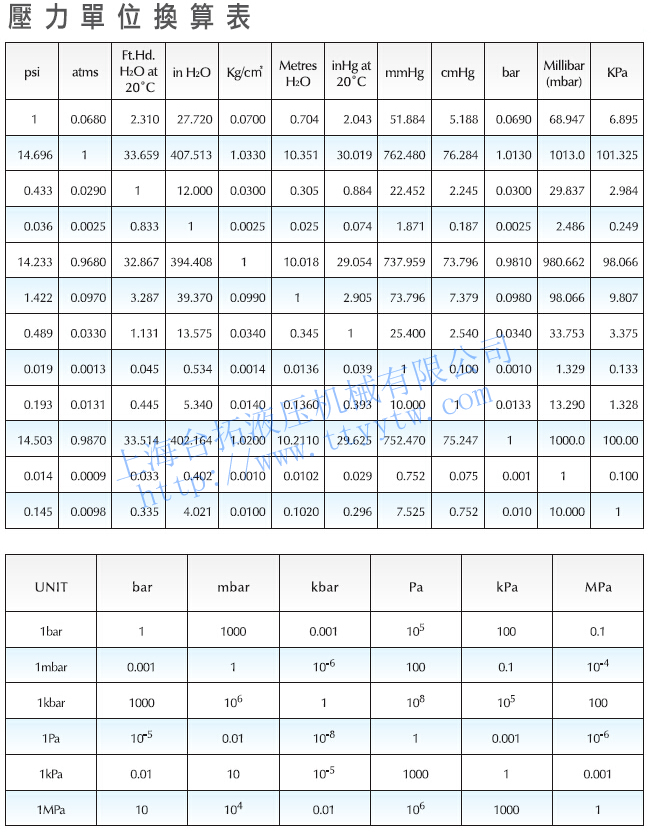 ≤70kg/cm2(bar)C型管 >70 kg/cm2(bar)H型管內機材質 AISI316 面板材質 鋁制,白色底,黑色字體 指針材質 鋁制,黑色 外殼材質 AISI 304 上框材質 AISI 304 填充液 甘油(99.5%) 鏡面材質 強化玻璃,壓克力,玻璃 選購配件 矽油、法蘭、遺留式指針、U型取付金具、Π字架取付金具 壓力表壓力單位換算表
