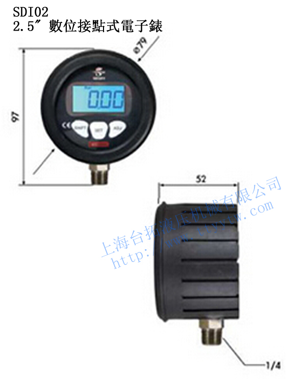 2、數位接點式壓力表SDI2.5無焊接,不含O環和矽油,背光顯示,歸零設定,單位切換4種PSi,Bar,kg/cm2,Mpa。