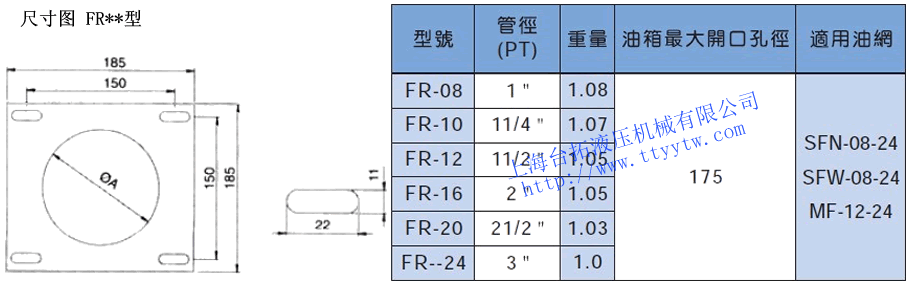 MF-12-24ER-10 1 1/4" 10.7 ER-12 1 1/2" 1.05 ER-16 2" 1.05 ER-20 2 1/2" 1.03 ER-24 3" 1.0 濾油網清潔蓋FS,FR系列尺寸圖