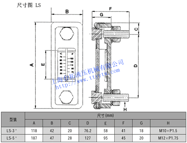 液位溫度計LS鍍烙鐵質外殼,壓克力鏡面。適用與潤滑油、礦物油、汽油等。