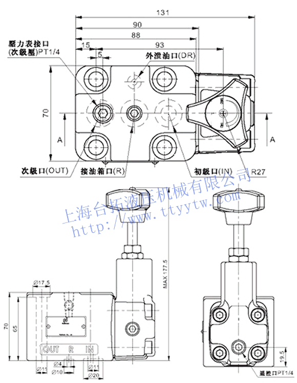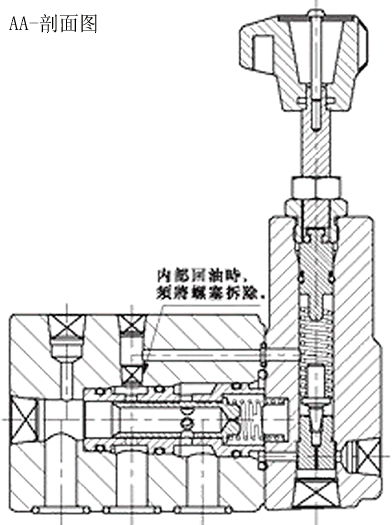 無標記:內部泄油32 備注:外部泄油作為標準型,當回油口無背壓(5bar)以下)時,也能使用內部泄油方式。2、需要更換泄油方式時,請參考型號說明進行。3、泄油口直接回油箱,為得到良好的減壓性能,初級口和主油路壓力差為5bar,泄漏量為600ml/min。