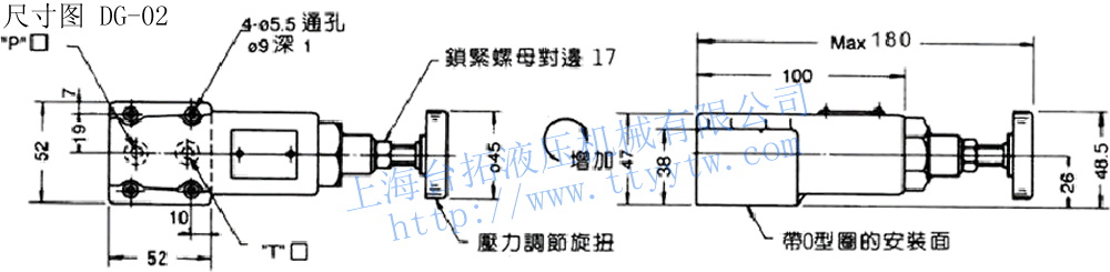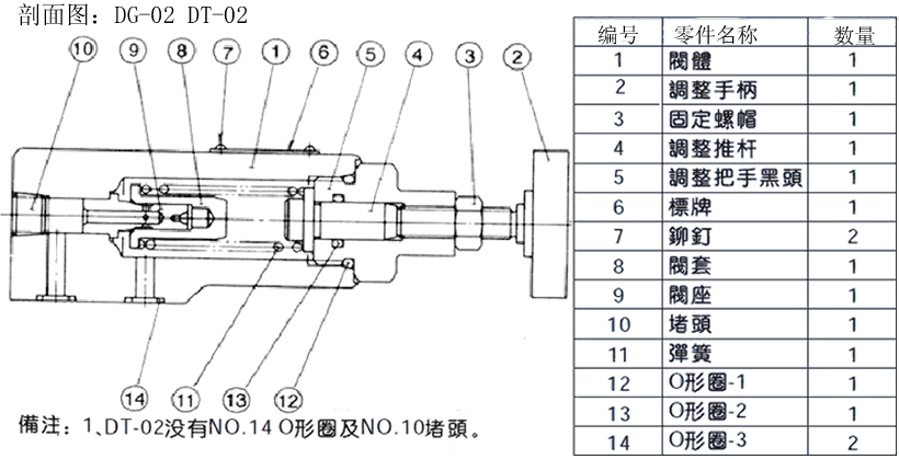 02:6通徑請參照規格表 直動式溢流閥DG,DT規格表