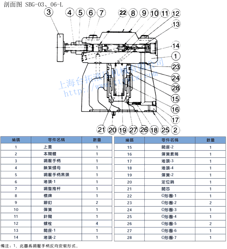 SB G -06 B L 系列號碼 固定型式 規(guī)格 壓力調(diào)整范圍 壓力調(diào)整手柄 先導(dǎo)式溢流閥