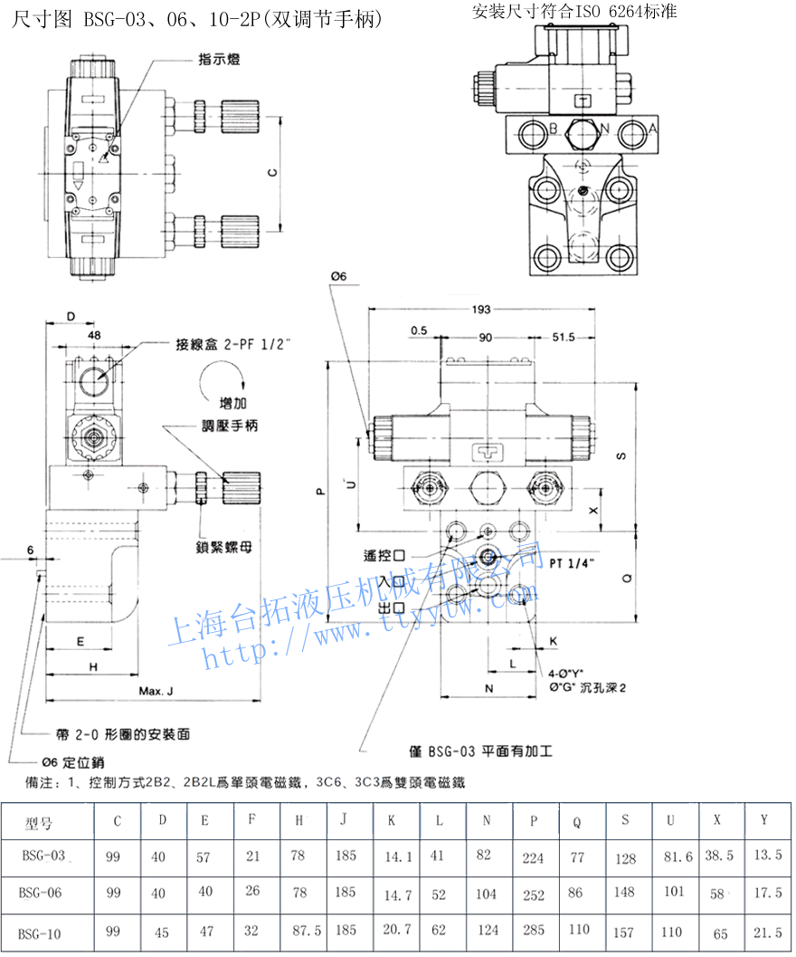 3P:三段壓力控制電磁溢流閥BSG,BST規格表