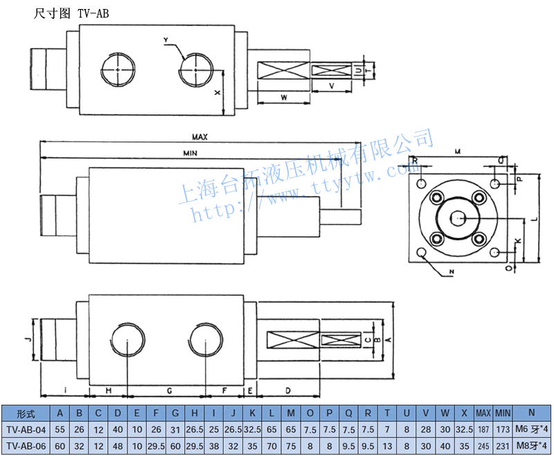 型號(hào) 最大流量?/min 最大壓力MPa 口徑 DMOW 10 4 PT 1/8 " 雙位式流量控制閥TV-AB尺寸圖
