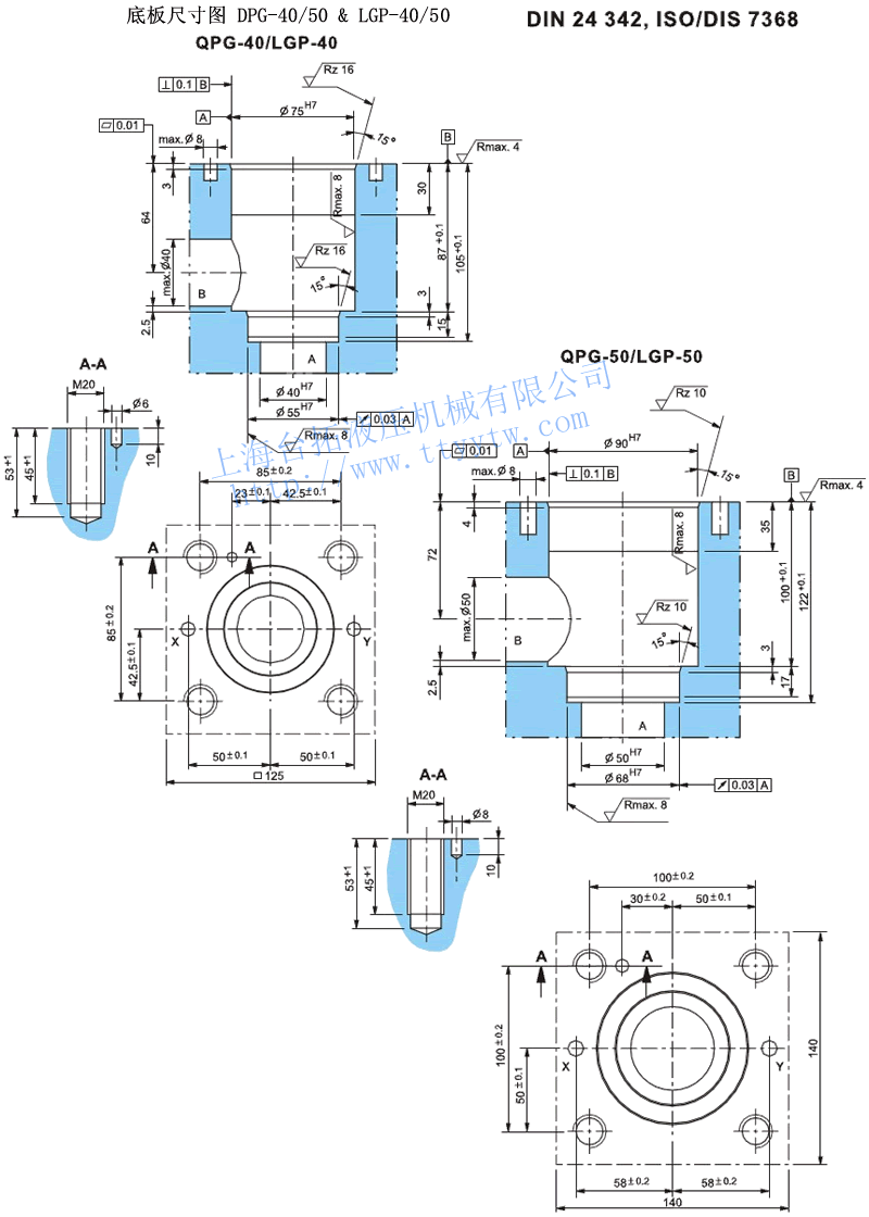超高響應電液比例流量閥QPG16/25/32&LGP16/25/32底板尺寸圖下載 超高響應電液比例流量閥QPG40/50&LGP40/50底板尺寸圖下載