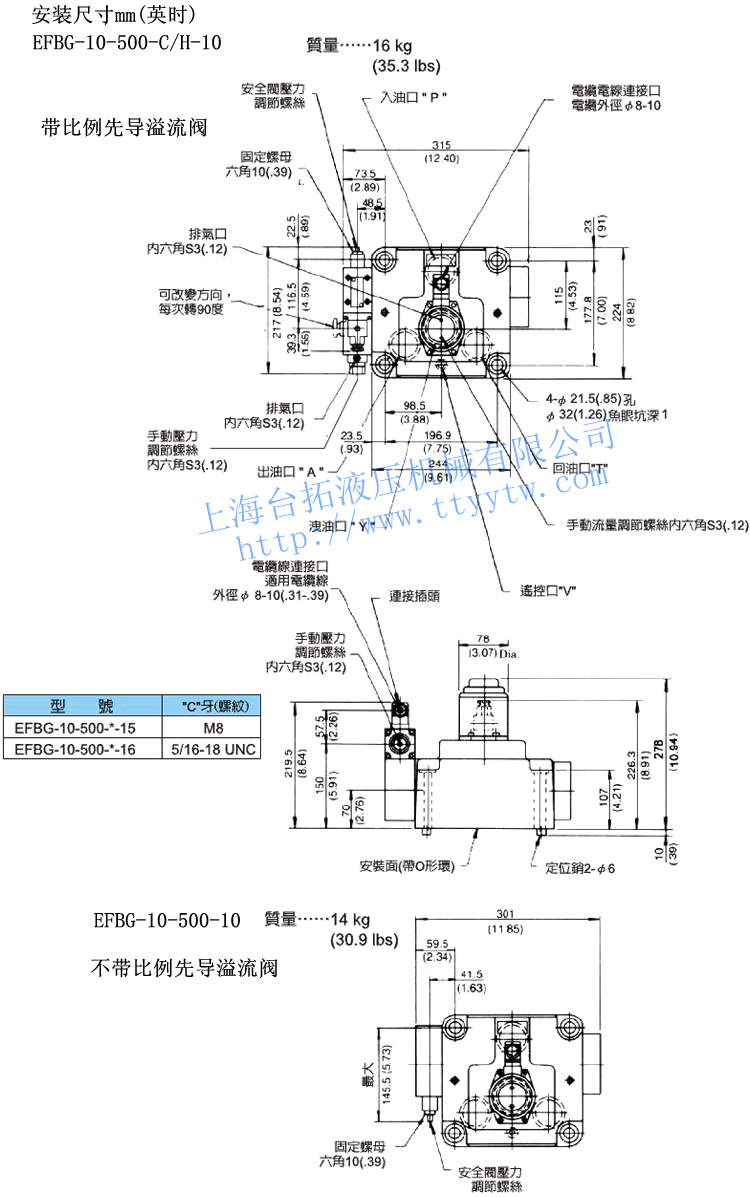 電液比例溢流調速閥EFBG-10-500-*安裝尺寸下載