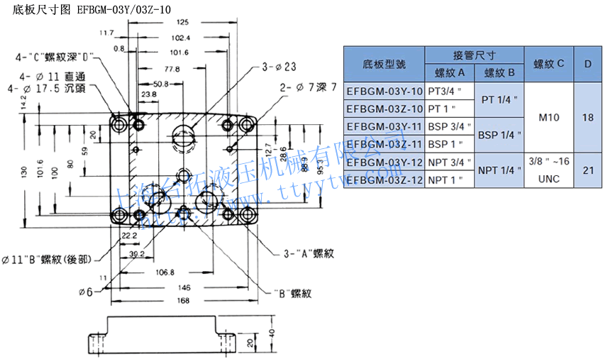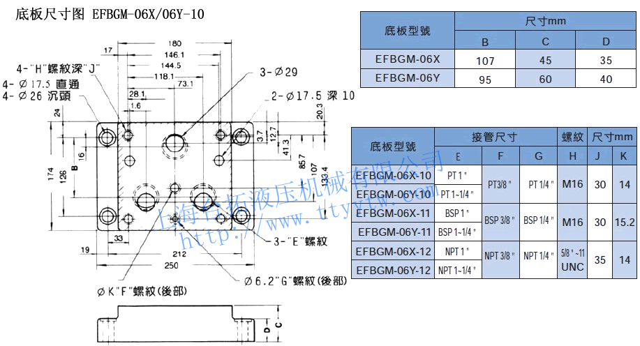 電液比例溢流調速閥EFBGM-03Y3Z-10底板尺寸圖下載 電液比例溢流調速閥EFBGM-06X6Y-10底板尺寸圖下載