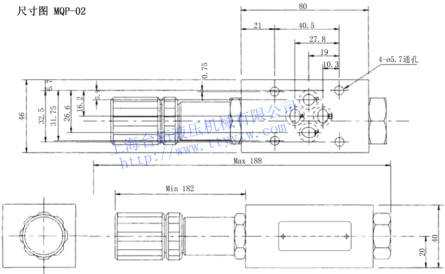MQ P -02 -B -P 系列號碼 控制油路 規格 壓力調整范圍 控制方式 疊加式順序閥 P:P油路 02:1/4"