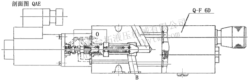 最高使用壓力 Mpa 推薦流量?/min 流量調節范圍?/min 最小穩定流量?/min 20 40 0~10 0.02 疊加式電控單向調速閥QAE剖面圖