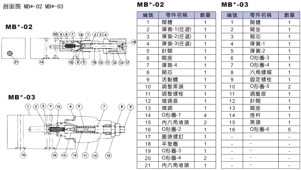 MB P -02 -B -M 系列號(hào)碼 控制油路 規(guī)格 壓力調(diào)整范圍 把手型式 疊加式