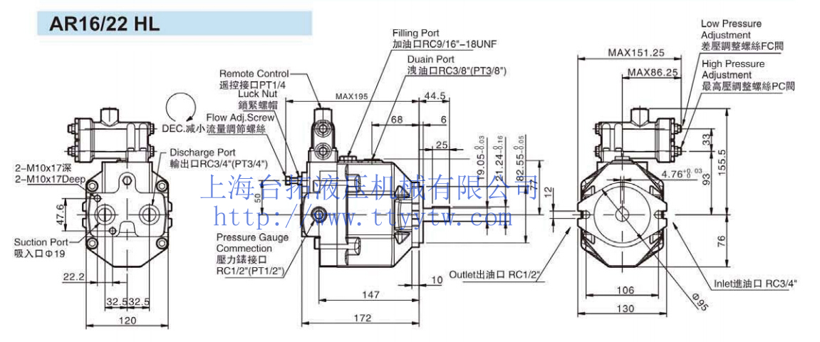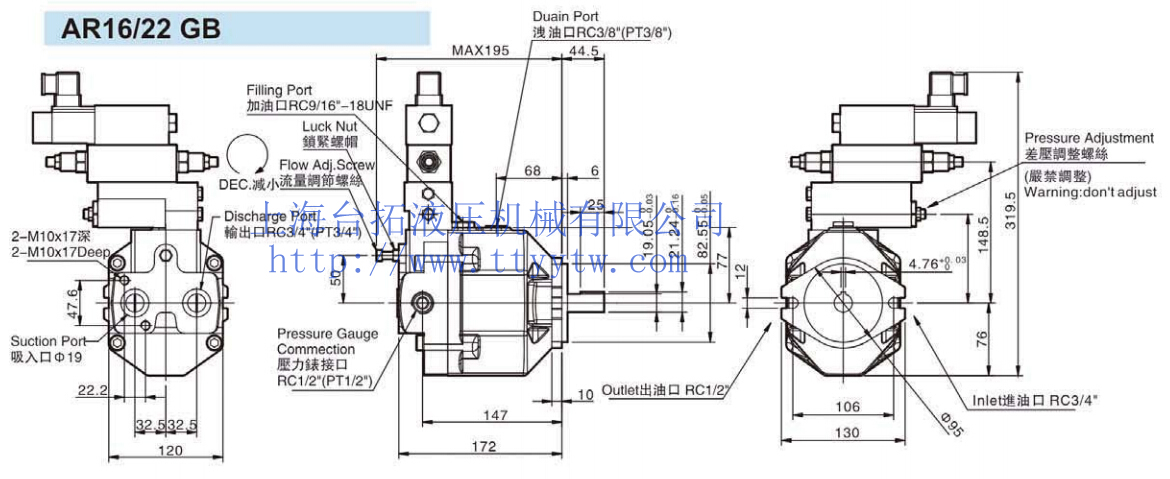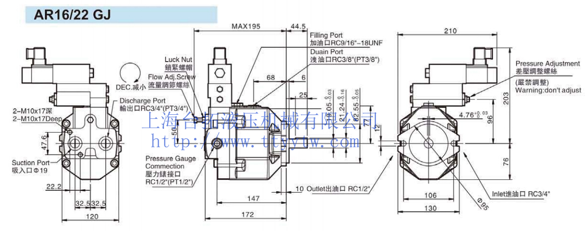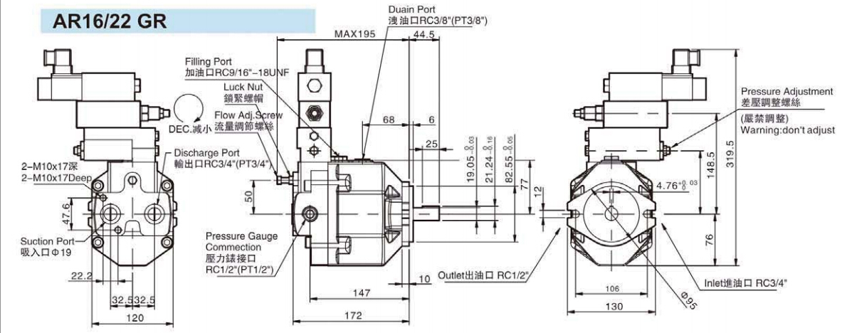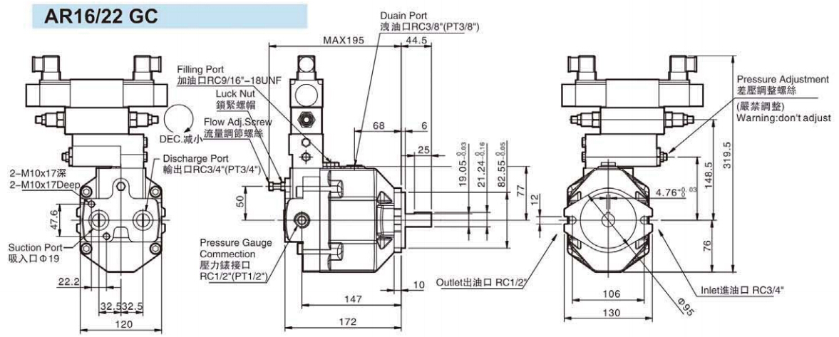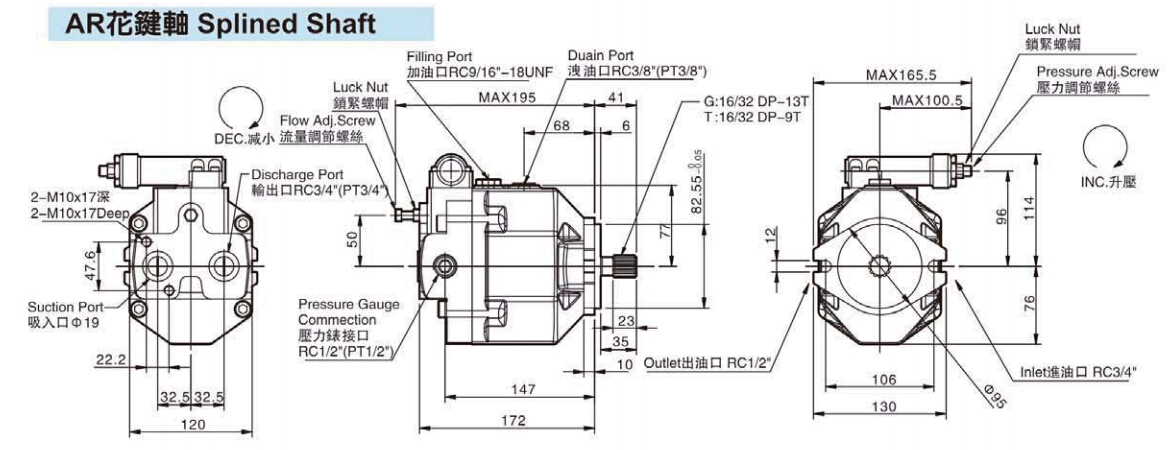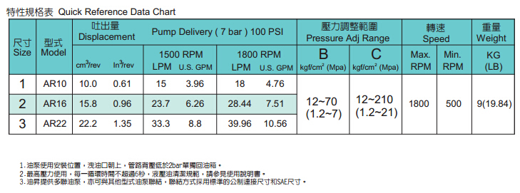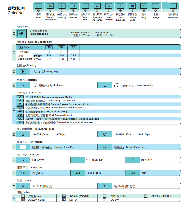 可變排量柱塞泵AR采用合金材料,具低噪音、省能源特性。裝配容易,可直接與電動馬達連接,外行美觀,小巧輕化。