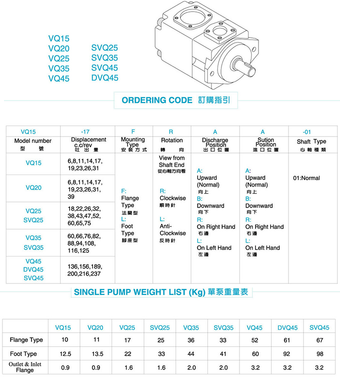 定量高壓單泵VQ15~VQ45規格表