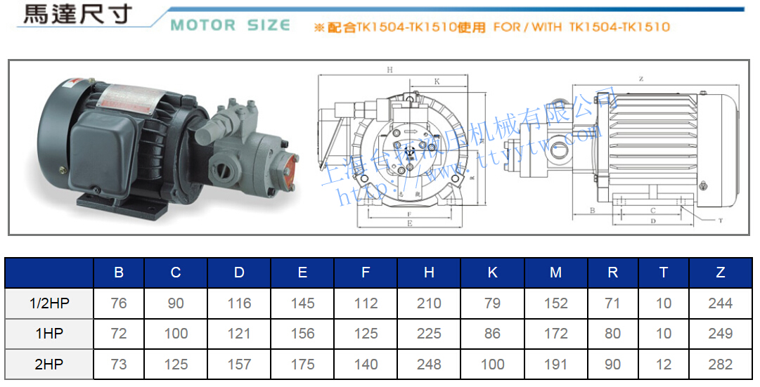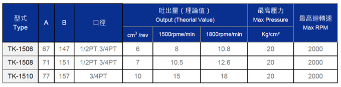 重油泵浦TK-15系列規格表