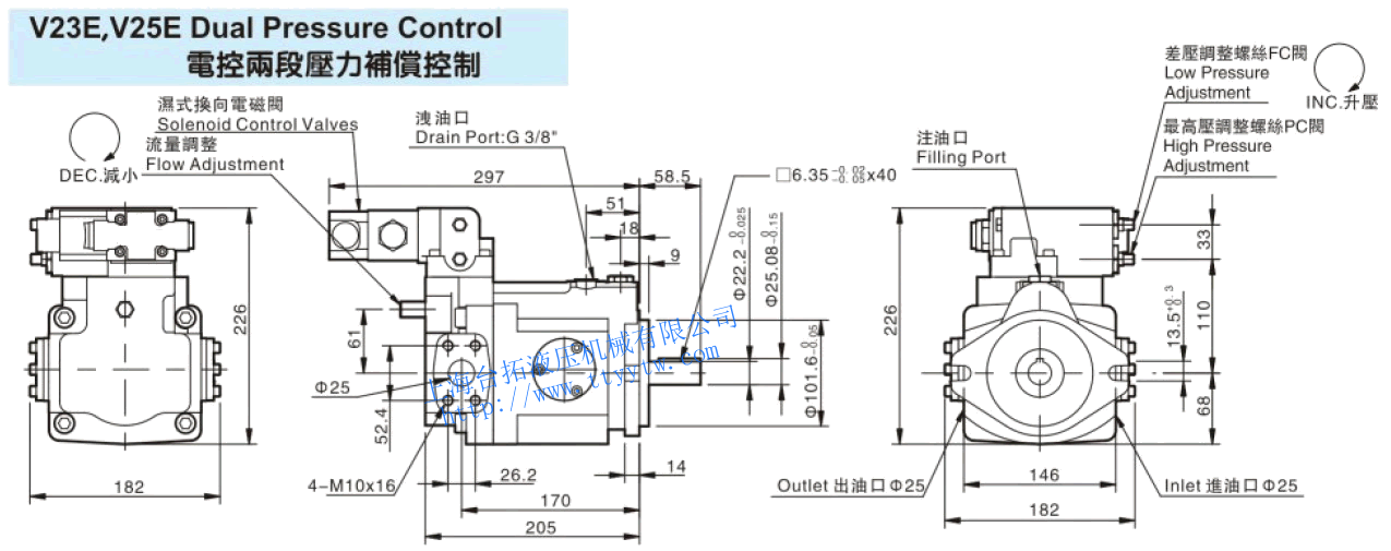 變量柱塞泵V23C,V25C尺寸圖下載 變量柱塞泵V23CG,V25CG尺寸圖下載