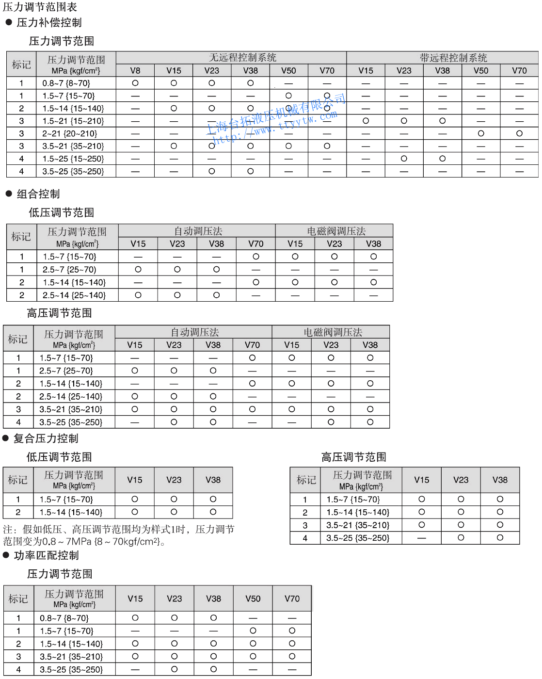 制系統備注:控制方法為A,CH或SA的情況下設計代號為35泵型號為V23。控制方法為CJ或D的情況下設計代號為60泵型號為V70。