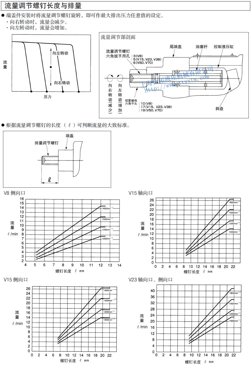 變量柱塞泵V系列排量調節螺釘長度與流量