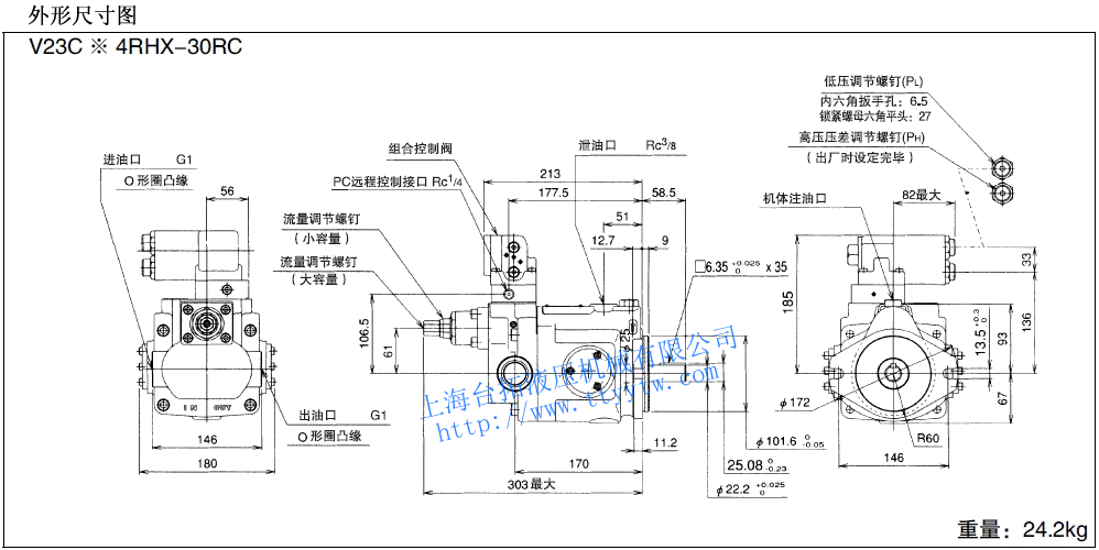 變量柱塞泵V23A4RX-30RC尺寸圖下載 變量柱塞泵V23C**RHX-30尺寸圖下載