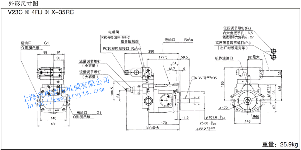 變量柱塞泵V23C*4RHX-30RC尺寸圖下載 變量柱塞泵V23C**RJ*X-35尺寸圖下載